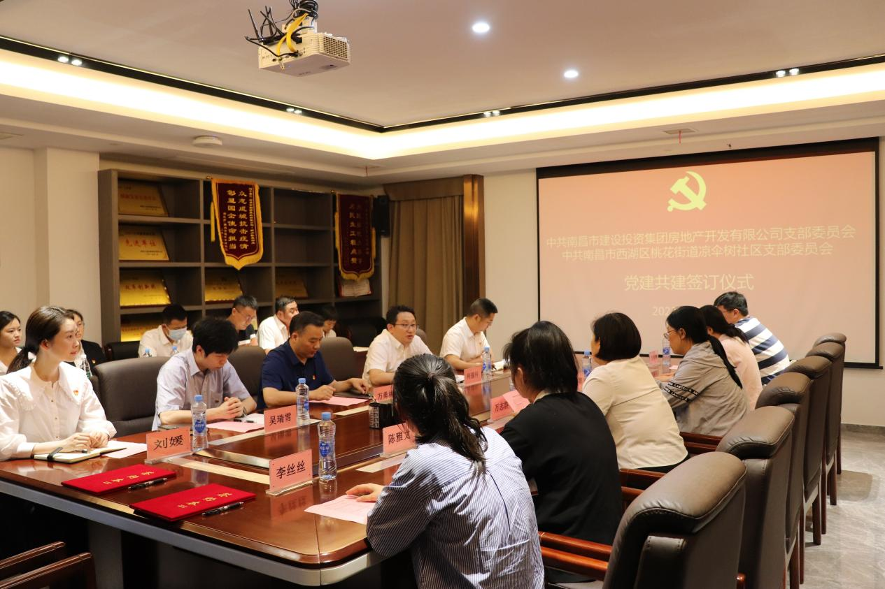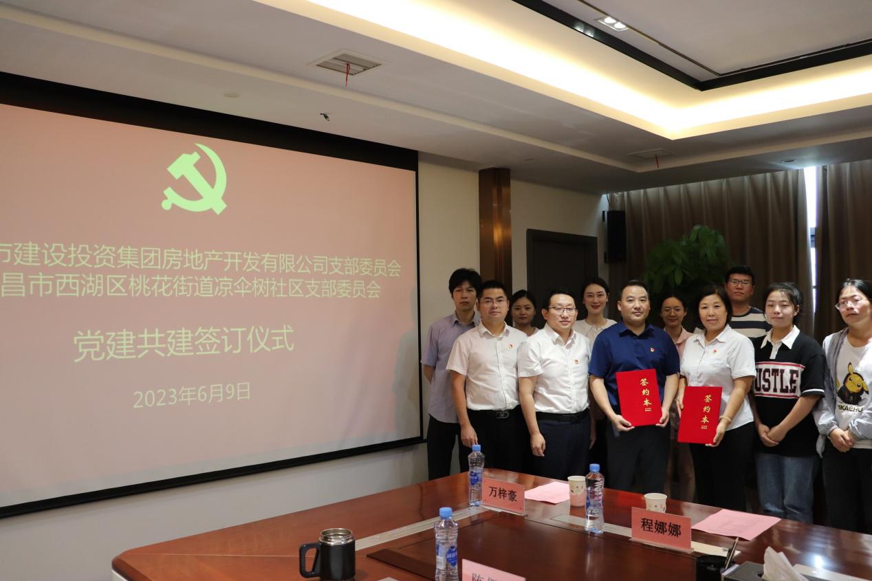 为起劲探索立异党建事情新模式 ,, ,,,探索团结党建新路径 ,, ,,,起劲形成组织共建、资源共享、生长共商的党建事情新时势 ,, ,,,6月9日 ,, ,,,南昌市建设投资集团房地产开发有限公司党支部与南昌市西湖区桃花街道凉伞树社区党支部举行了党建共建签约仪式。。。。。公司党支部委员、总司理万勇林 ,, ,,,党支部委员、副总司理何强科 ,, ,,,总司理助理吴瑞雪、手艺照料陈保福出席 ,, ,,,双方单位共16名党员加入。。。。。