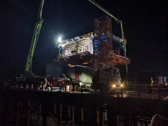据项目认真人先容,,,,,,此次浇筑完成的标段最大跨度60+2*90+60米一连箱梁右幅83号主墩0号块,,,,,,长12米、高5.5米,,,,,,宽16.55米,,,,,,混凝土使用方量为433.6立方米,,,,,,接纳支架现浇的施工工艺,,,,,,施工历程中保存浇筑难度大、施工时间长、清静危害高等情形。。。。。。该一连梁“0号块”顺遂浇筑完成,,,,,,标记着东阳特大桥转入上部结构施工阶段。。。。。。为了确保此次一连梁0号块顺遂浇筑,,,,,,在南昌市非凡国际集团的统一安排下,,,,,,施工单位全心组织,,,,,,多次举行施工手艺交底,,,,,,明确从支架搭设到模板装置、钢筋帮扎等各个工序、环节的手艺规程和操作规范,,,,,,确保浇筑历程中的清静质量有序可控。。。。。。