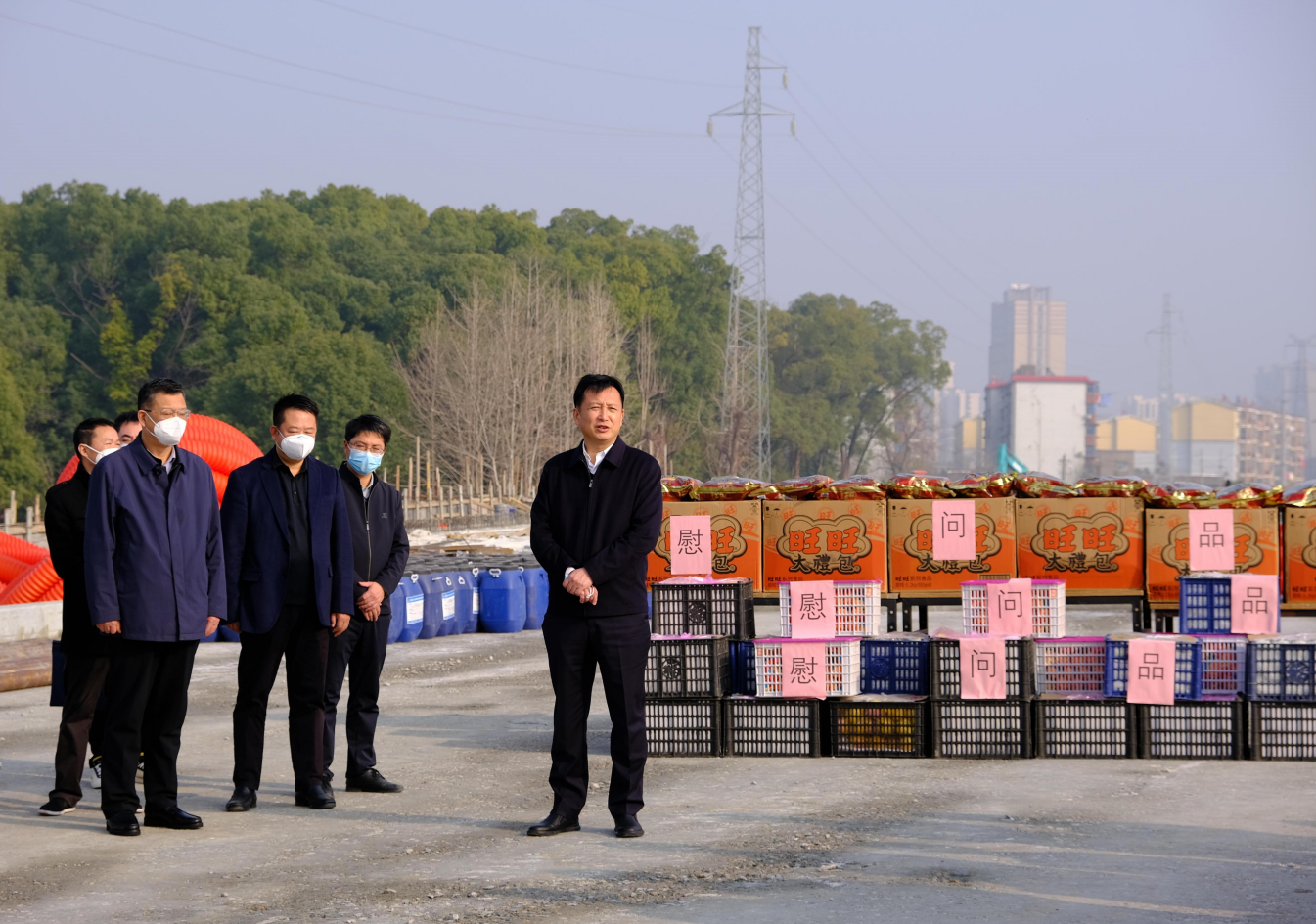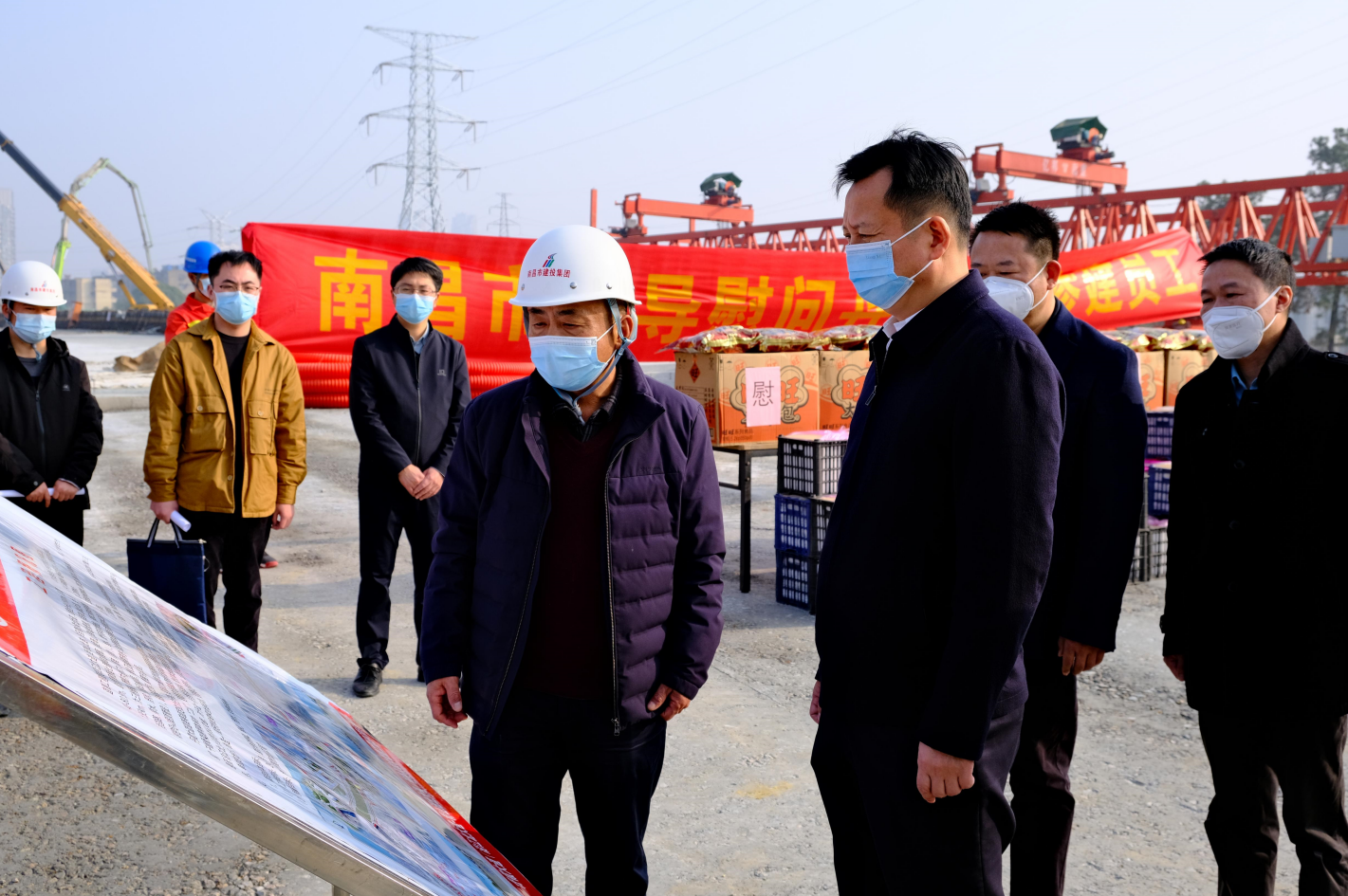 春节来临之际,,,,,,,1月10日下昼,,,,,,,市委常委、副市长肖云走访慰问丹霞路蹊径及综合管廊项目现场一线工人,,,,,,,并观察项目建设希望情形,,,,,,,市公建中心主任熊伟、市住建局副局长池建林、市非凡国际集团副总司理罗辉陪同。。。。。。。